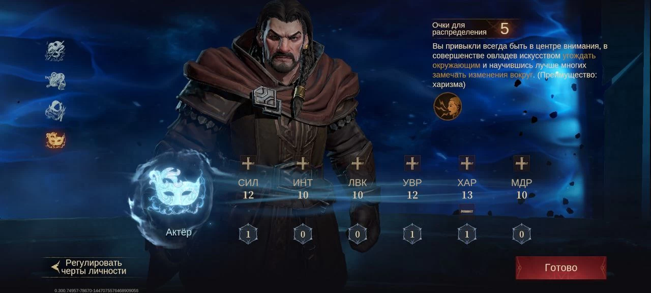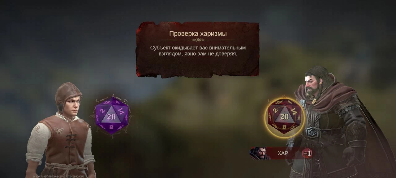 Проверка статов при помощи кубиков — частая тема в Dragonstride. У главного персонажа есть атрибуты, которые вы вручную вкачиваете — сила, интеллект, ловкость, уворот, харизма и мудрость. Они нужны для того, чтобы при броске кубика на проверку определённого стата вы получили небольшой бонус: например, 12 на кубике +2 очка за атрибут ГГ.