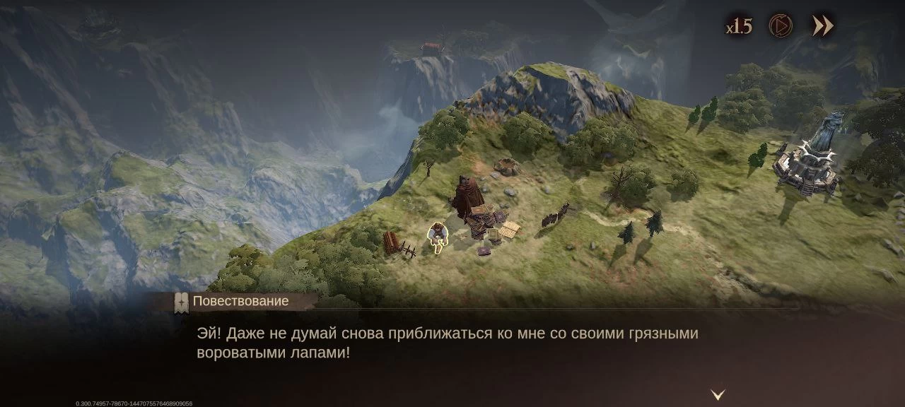 На старте мы попадаем в мир духов, узнаём о главгаде (Дитя Хаоса) и его последователях, а также сталкиваемся с огромным кубиком. В него можно сесть и поуправлять им — сбить враждебных духов и разрушить старые постройки, чтобы получить с них ресурсы. Подобного я не помню в оригинальной Dragonheir.