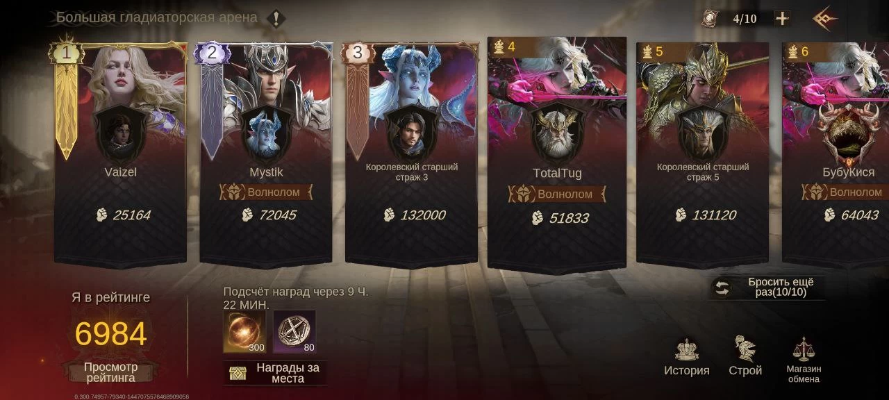 PvP проходит на арене и представляет собой типичный авто-баттлер с принудительным авто-режимом. Время на матчмейкинг не тратится. За победы вы повышаете свой рейтинг, а в начале сражаетесь с ботами. Я не совсем понимаю местную систему — топ-1 удерживает игрок с 25 164 силами. Это очень мало — у топ-3 132 000 силы. За хорошие результаты вы получаете валюту, которую можно потратить в специальном магазине.