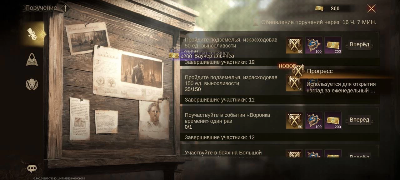 В конце обзора я решил затронуть альянсы, так как они открываются позже. Ничего особенного в этом режиме нет — подаёте заявку, вас принимают, дальше жертвуете материалы и выполняете ежедневные поручения, чтобы получать особые билеты, которые можно потратить на фиолетовых героев, скакуна и цвет шрифта. Зачем всё это нужно, я не представляю.